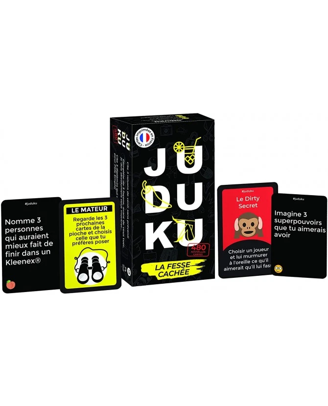 - LA PARTIE : 3-10 JOUEURS créatifs et pas du tout intelligents, 15-45 min, + 16 ans. Pas besoin d’avoir JUDUKU ORIGINAL pour jouer à JUDUKU LA FESSE CACHEE