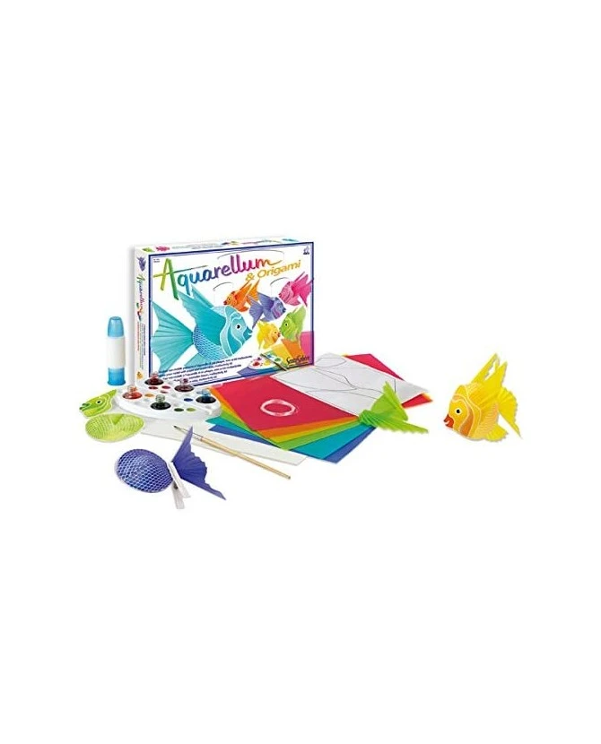 Cette activité manuelle permet de créer un mobile de poissons tout en légèreté avec des feuilles serties Aquarellum, du papier calque multicolore et les accessoires nécessaires. En associant la technique d’Aquarellum, le pliage origami et le montage d’un mobile, ce kit est particulièrement complet. Amusant à réaliser avec un résultat esthétique et décoratif toujours au rendez-vous, il séduira tous les adeptes de loisirs créatifs. Contenu du coffret: 2 planches serties à peindre et découper, 6 feuilles de calque de couleur, 5 encres aquarelles, 5 tiges en métal, 1 palette, 1 pinceau, 1 tube de colle, 1 pipette, Du fil nylon, 1 notice.