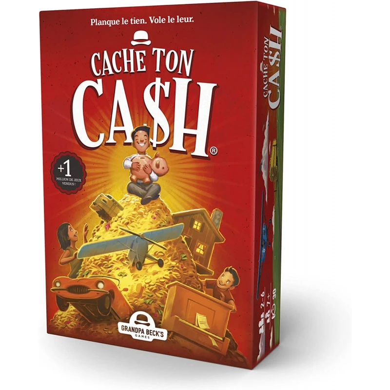 Cache ton cash est un jeu de carte familial et taquin. Les joueurs doivent garder et proteger des cartes représentant des objets de valeurs et voler celles des autres !