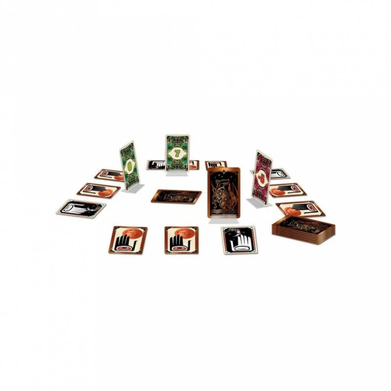 On ne voit pas sa propre carte, ni celle placée au centre mais on voit celles des autres joueurs. A son tour, on peut surenchérir sur la valeur annoncée précédemment ou bien défier le joueur précédent si l’on pense que sa valeur annoncée a dépassé le total des cartes. dans ce cas, le joueur qui a perdu le défi perd une des ses cartes “Coup d’oeil” et au bout de la 3e est éliminé du jeu. Le joueur restant seul à la fin remporte la partie.