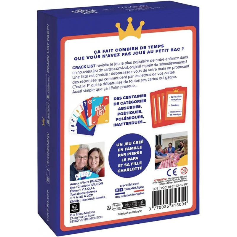 - 🃏UN REMIX PARFAIT DU PETIT BAC : On se souvient tous des catégories du Petit Bac: Prénoms, Métiers, Pays ou Villes… CRACK LIST a pris le meilleur du jeu le plus connu de notre enfance pour créer le nouveau jeu de cartes d’ambiance en famille ou entre amis