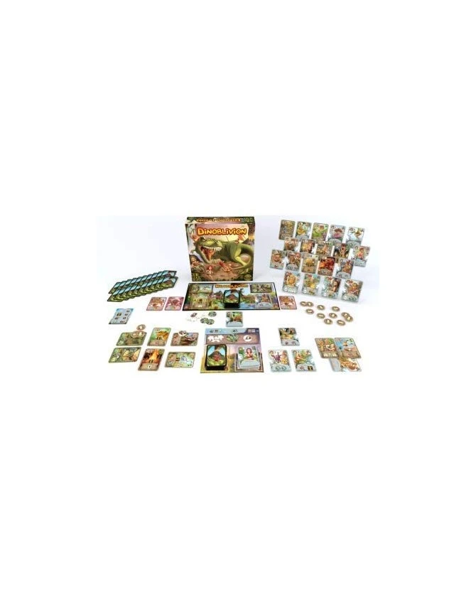 Dinoblivion est un jeu de cartes évolutif qui présente un univers où les humains coexistent avec les dinosaures. Vous contrôlez les membres d’un clan primitif que vous devez développer en chassant, en gérant vos ressources, en construisant de puissants totems et en combattant des dinosaures. Elaborez une stratégie gagnante en combinant vos cartes de façon judicieuse pour vous rendre maître de la terre de Dinoblivion !
