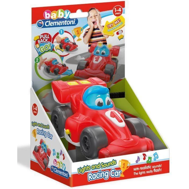 Tire en arrière cette voiture de course et regarde-la filer ! Appuie sur la tête du conducteur pour activer les sons d’une véritable Formule 1. Les phares de la voiture clignotent pour amuser l’enfant. Stimule la perception visuelle et auditive, la dextérité manuelle et la compréhension de la relation de cause à effet.