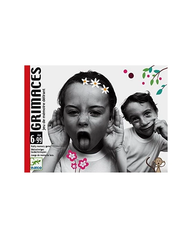 Djeco – Jeu de cartes – Grimaces – Jeu de société, Observer, mémoriser…puis faire preuve de talent dans l’art subtil de la grimace: 3 conditions pour être l’équipe gagnante! Contient : 72 cartes.Nombre de joueurs : 3 à 5.Durée moyenne d’une partie : 10 minutes. Grimaces de Djeco est un jeu de cartes qui amusera les petits et les grands ! Le but de ce jeu est de mémoriser les grimaces de l’équipe adverse et d’en faire deviner un maximum à son partenaire. Rires et bonne humeur assurés !Dimensions : 15,70 x 11,80 x 2,90 cm