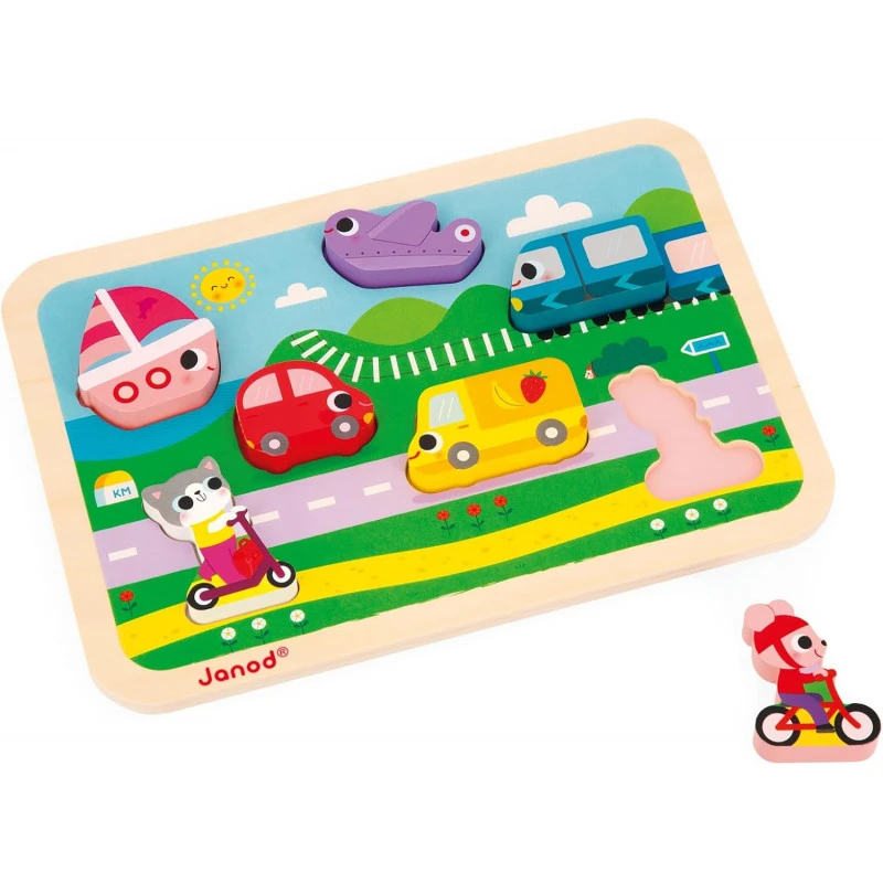 - CARACTERISTIQUES : Contient un support et 7 pièces en bois. Dimensions du puzzle : Longueur 29.8 cm x Largeur 2,1 cm x Hauteur 20.8 cm. Matériau(x) utilisé(s) : Bois (Contreplaqué de tilleul pour plateau + MDF pour les pièces). Tranche d’âge recommandée : de 18 mois à 3 ans