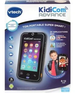 - Le KidiCom Advance noir des grands ! Un portable enfant au look high-tech avec un grand écran 5 pouces tactile plat pour plus de réalisme ! Le premier portable enfants, sécurisé et sans abonnement ! Votre enfant échange en Wi-Fi des messages écrits ou vocaux, des photos, des dessins avec sa famille ou ses amis et ceci de façon sécurisée. Il peut même ajouter des filtres à ses photos avec l’application V-Snap et les envoyer à ses contacts !
