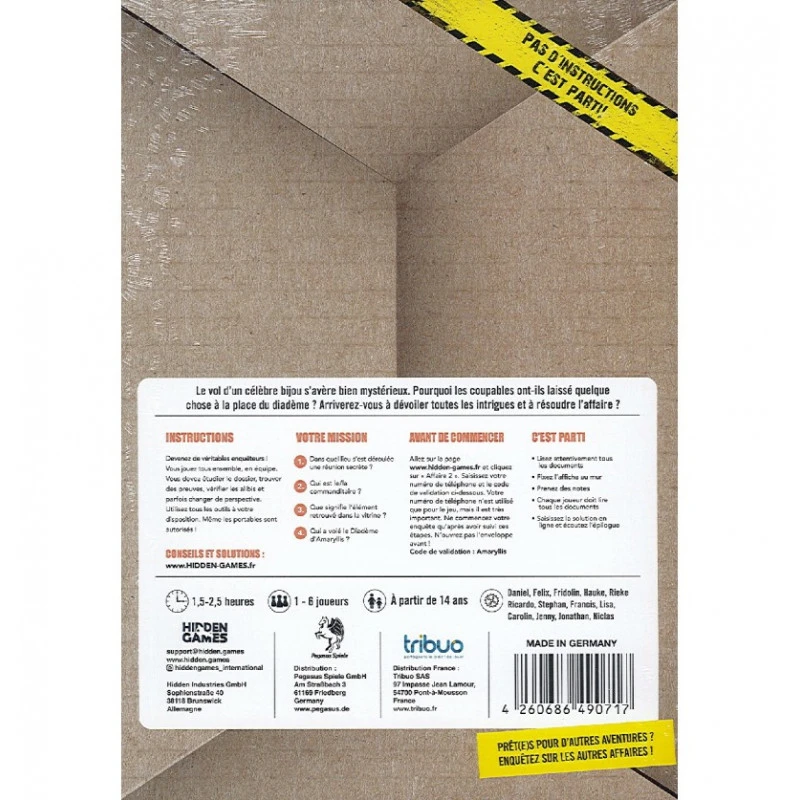 Dans quel lieu s’est dĂ©roulĂ© une rĂ©union secrète ? Qui est le/la commanditaire ? Que signifie l’Ă©lĂ©ment retrouvĂ© dans la vitrine ? Qui a volĂ© le Diadème d’Amaryllis ?