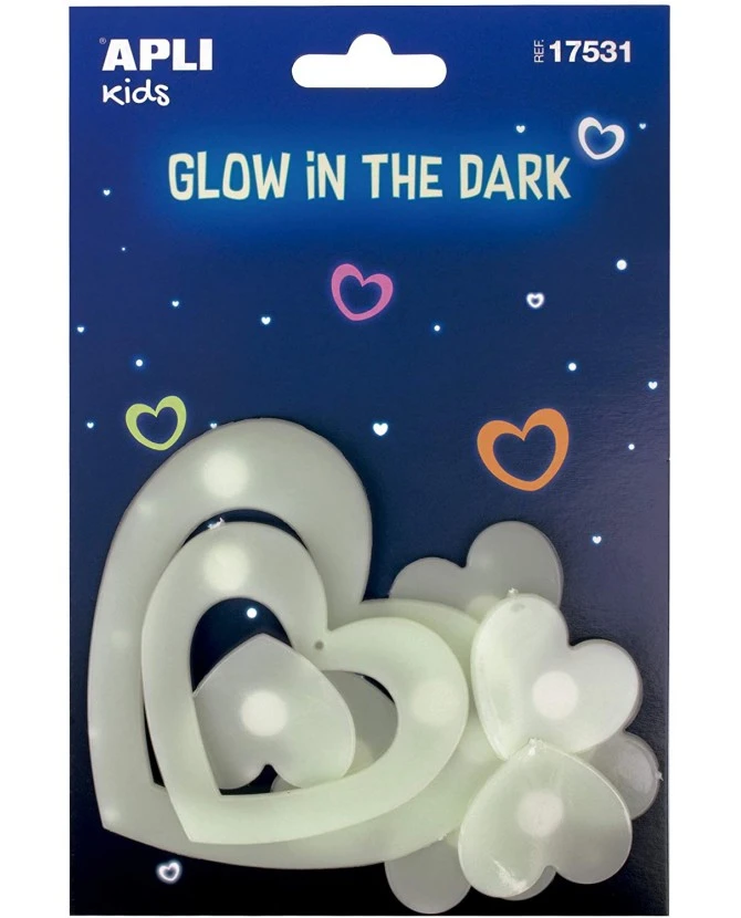 Lot de 9 autocollants luminescents en forme de cœur.