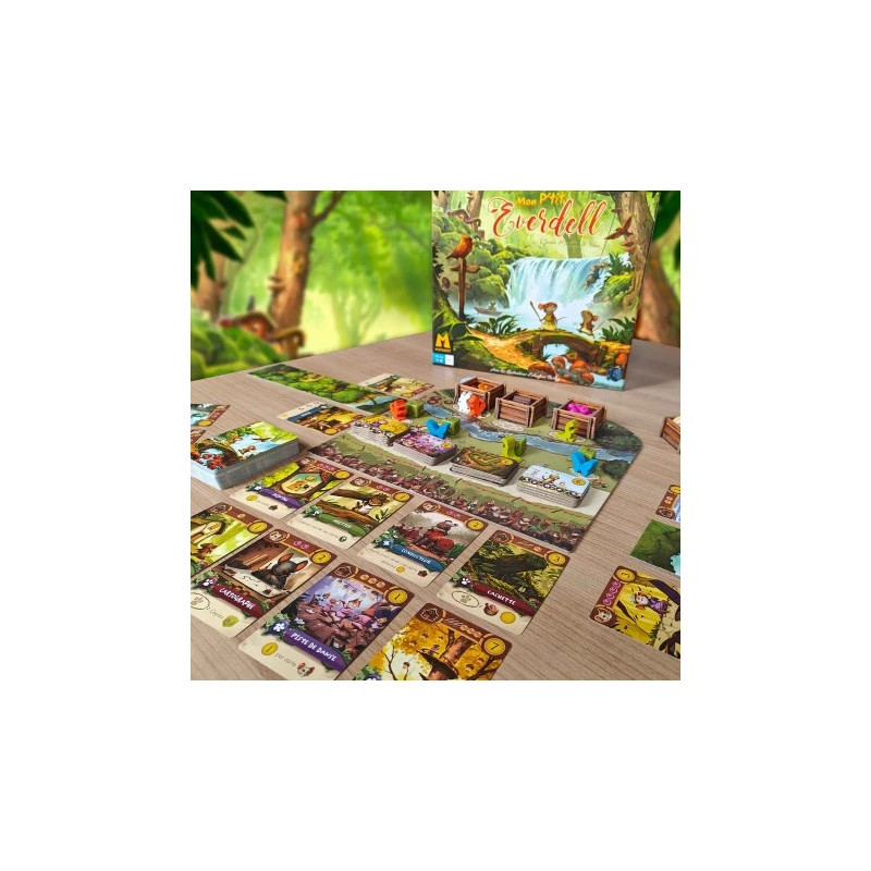 Mon P’tit Everdell ça pourrait être « mon premier jeu de placement d’ouvriers », « mon premier jeu de gestions de ressources » et « mon premier jeu de tableau de cartes » réunis dans l’univers onirique d’Everdell afin de rassembler petits (à partir de 6 ans) et grands autour de la table.