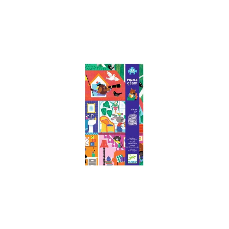 Découvrez le puzzle La maison p’tits copains de Djeco, un puzzle géant de 36 pièces en carton pour les enfants à partir de 3 ans.