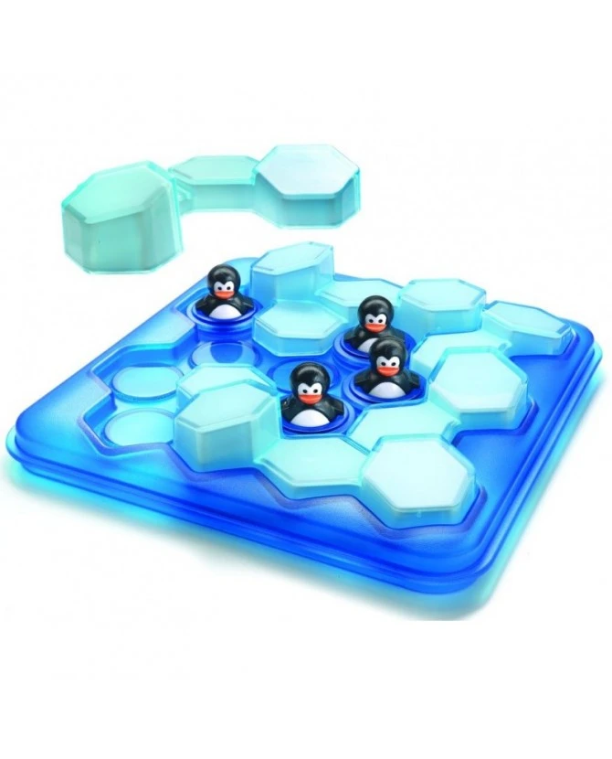 On place les pingouins dans l’eau aux emplacements indiqués par un des défis. Il faut alors compléter le cadre de jeu avec les 4 morceaux de banquise, sans écraser les pingouins. La règle est simple mais les défis de plus en plus difficiles!