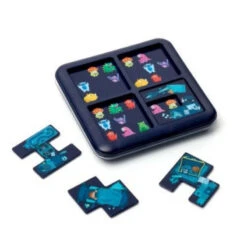 Jeu de logique Ă©volutif sur le thème des monstres. Un livret offre 60 dĂ©fis rĂ©partis en 4 niveaux de plus en plus difficiles. Chaque dĂ©fi dĂ©signe les monstres qui doivent rester apparents. Il s’agit alors de positionner les 4 pièces de puzzle sur le plateau pour cacher tous les autres monstres. Il n’y a qu’une seule solution Ă chaque dĂ©fi! Un jeu compact que l’on peut emporter en vacances ou en classe, pour travailler la logique, le repĂ©rage spatial et la concentration!