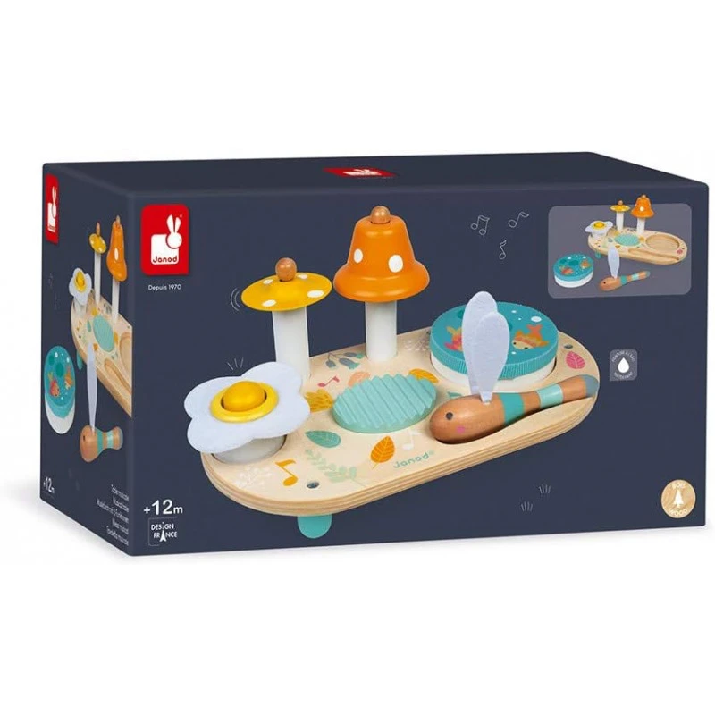 - DES COULEURS DOUCES ET ACTUELLES : Avec son design original et unique, ses formes poétiques et ses couleurs douces, la table musicale Janod est un jouet en bois irrésistible ! Avec ses cymbales en forme de champignons, son pouet-pouet représentant une fleur, ou encore avec la jolie libellule avec ailes en feutrine qui sert de baguette, les enfants vont adorer manipuler et jouer des instruments de musique !
