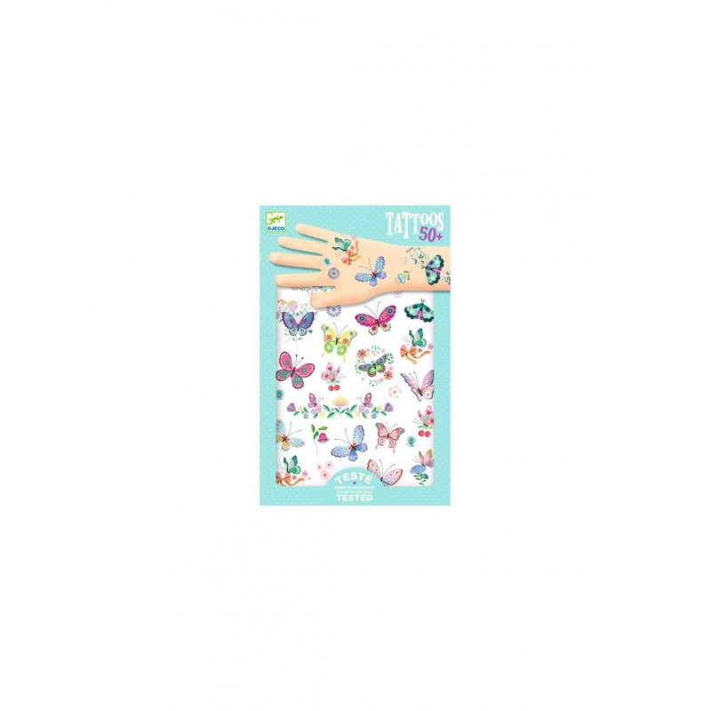 Découvrez les tatouages Papillons de rêve de Djeco, de jolis tatoos testés dermatologiquement représentant de magnifiques papillons aux couleurs douces, légères et scintillantes, grâce à certaines zones pailletées.