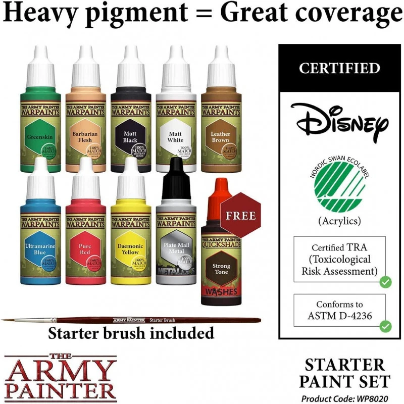 - 🎨 NON-TOXIQUES ET ÉCOLOGIQUES – Nos peintures acryliques possèdent le Nordic Swan Eco-label, votre garantie que nous avons fait tout notre possible pour diminuer nos émissions, réduisant ainsi l’impact environnemental global provenant de la production et de la consommation de biens. De plus, nos peintures ne sont ni toxiques ni dangereuses à l’utilisation, pour ceux qui débutent la peinture miniature comme pour les confirmés concernés par leur santé mais aussi par la qualité de leurs outils.